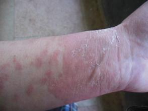 传染性湿疹样皮炎的发病时体温有时会骤然的升高。自身也会因过敏的体质而全身的发病。当传染性湿疹样皮炎的病情不重或治愈后患处会有明显的干燥脱屑。