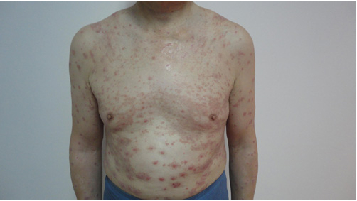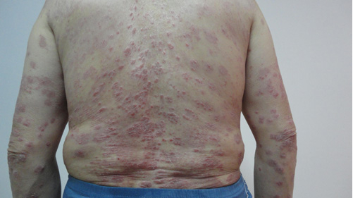 原来,他曾是一名牛皮癣患者,有过9年的病史,起初是犯了一次咽炎,由于年龄大了,陈老也习惯了身体偶尔出些小问题,就没放在心上,也没吃药,过了将近一个月,没想到在四肢、躯干上出现了红色的丘疹,他误以为是皮肤过敏引起的,就让老伴买了一些抗感染的药物,驱痒很快,皮疹也很快消失了,但没想到就是这次疏忽,造成了严重的后果,那就是每年秋冬季都会犯皮疹,而且上面覆盖有银白色的鳞屑,这下陈老吓坏了。