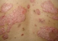 ②牛皮癣初期皮疹开始为粟粒大至黄豆大的红色丘疹或斑丘疹,以后皮疹逐渐扩大增多,并可互相融合成片,而呈点滴状、钱币状、地图状、盘状、蛎壳状等。