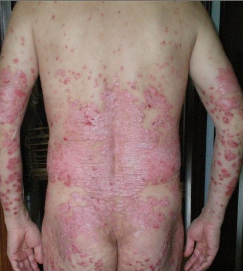 然开始变得严重,全身上下包括头部都长出来许多密密麻麻的小丘疹,而且还不断的掉皮。丽华最后终于忍受不住丈夫的逼问说出来自己是银屑病的事实。