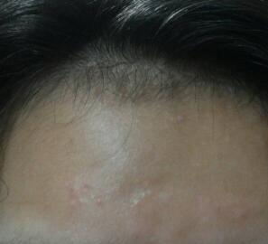 患者咨询:额头上有块地方反复长小水泡,抓破了,就会结盖,脱皮,还很痒,那块皮肤厚厚的,木木的,好像手捞了再捞别的地方,也有点传染过去,不知道这是什么皮肤病,反复发作,很痛苦,现在脸上还很感燥,尤其是那一块地方,感觉好烫。