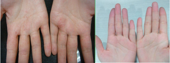 手上起小水疱痒的症状:双手同时长红色水疱,有剧烈瘙痒的感觉。