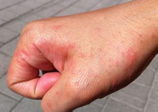 治疗效果:患者手上的皮肤在发病期的皮损、丘疹基本消退,表皮光滑,无抓痕。
