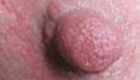 3、乳房湿疹:乳晕湿润、糜烂、结痂,结痂
