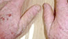 2、干燥型湿疹:表现为潮红、脱屑、丘疹