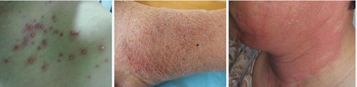 急性湿疹表现为原发性及多形性皮疹。常伴有较为强烈的瘙痒,在抓挠后出现糜烂面,当发展较为严重时,常会伴有皮肤的灼痛和身体发热等症状。
