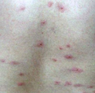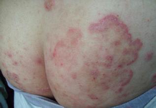 三、荨麻疹,初起皮肤局部发生瘙痒,抓后皮肤潮红,迅即发生形状不一,大小不等鲜红或白色风团,剧烈瘙痒,此起陂伏,一日之内可发作数次。一般皮疹泛发全身,粘膜部位亦可受累,发生于胃肠道可伴有腹痛、腹泻,发生于喉头粘膜,则可引起喉头水肿产生呼吸困难,胸闷憋气,严重者可窒息死亡。反复发作者,可迁延数月或数年。