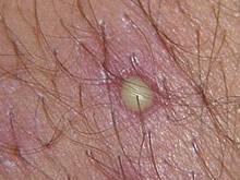 初起为与毛囊口一致的红色充实性丘疹或由毛囊性脓疱疮开始,以后迅速发展演变成丘疹性脓疱,中间贯穿毛发,四周红晕有炎症,继而干燥结痂,约经1周痂脱而愈,但也有反复发作,多年不愈,有的也可发展为深在的感染,形成疖、痈等,一般不留瘢痕。皮疹数目较多,孤立散在,自觉轻度疼痛。在成人主要发生于多毛的部位,在小儿则好发于头部,其皮疹有时可互相融合,愈后可留有小片状秃发斑。