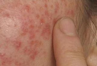 初起为与毛囊口一致的红色充实性丘疹或由毛囊性脓疱疮开始,以后迅速发展演变成丘疹性脓疱,中间贯穿毛发,四周红晕有炎症,继而干燥结痂,约经1周痂脱而愈,但也有反复发作,多年不愈,有的也可发展为深在的感染,形成疖、痈等,一般不留瘢痕。皮疹数目较多,孤立散在,自觉轻度疼痛。在成人主要发生于多毛的部位,在小儿则好发于头部,其皮疹有时可互相融合,愈后可留有小片状秃发斑。