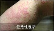 1.亚急性湿疹:常因急性期损害处理不当迁徙而来,以红色丘疹、斑丘疹、鳞屑或结痂为主。
