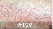 3.慢性湿疹:患处皮肤浸润增厚变成暗红色及色素沉着,持久不愈时皮损纹变粗大,干燥易发生皲裂,常于小腿手足肘窝外阴肛门等。