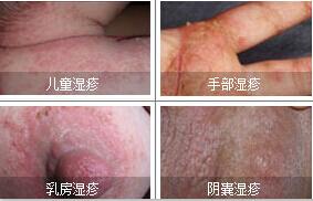 二、局部性湿疹,不及时治疗,可泛发蔓延全身:症状为如钱币性湿疹、自身敏感性湿疹、乏脂性湿疹。具有对称性、渗出性、瘙痒性、多形性复发性等特点。可发生在特定部位:手部湿疹、女阴湿疹、阴囊湿疹、耳部湿疹、乳房湿疹、肛周湿疹、小腿湿疹等,或泛发于全身。如钱币性湿疹、自身敏感性湿疹、乏脂性湿疹。